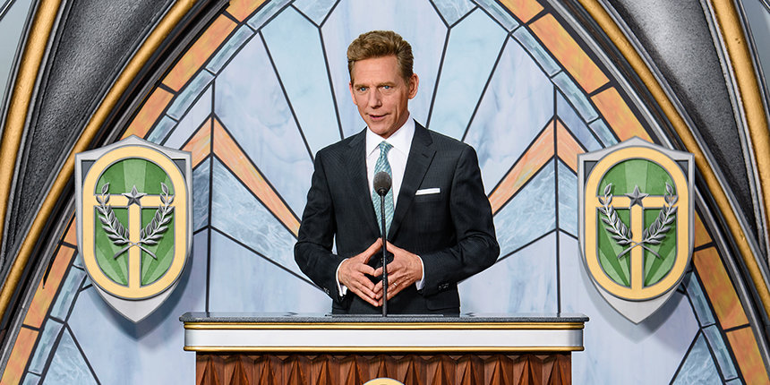 Describing how he “first laid eyes on this arboreal palace nestled at the rim of a eucalyptus wonderland,” Mr. Miscavige said, “the most descriptive phrase beyond ‘mind-blowing’ was, ‘perfectly perfect.’ Well, so too, is the timing of your grand opening.”