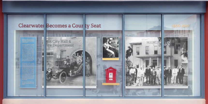 In tribute to the history of Clearwater, the Church established a permanent exhibit extending the length of the Coachman’s Cleveland Street and Fort Harrison Avenue exterior. The exhibit features photographs, informational displays and artifacts that trace the city’s heritage from its earliest days to the present. Among the many Clearwater milestones the exhibit depicts are: