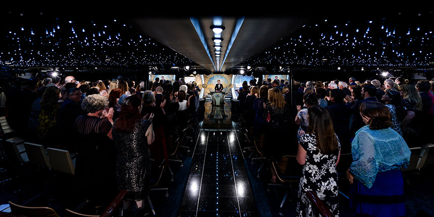 “Since last we met, our solar system of Churches now includes: Budapest, Hungary; Harlem, New York; San Diego, California; and, the rim of our terrestrial world in Auckland, New Zealand,” he said, before moving on to detail the most recent Church grand openings in the San Fernando Valley, California; Miami, Florida; and Copenhagen, Denmark.